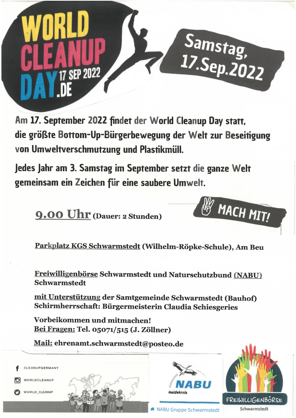 Am 17. September 2022 findet der World Cleanup Day statt.