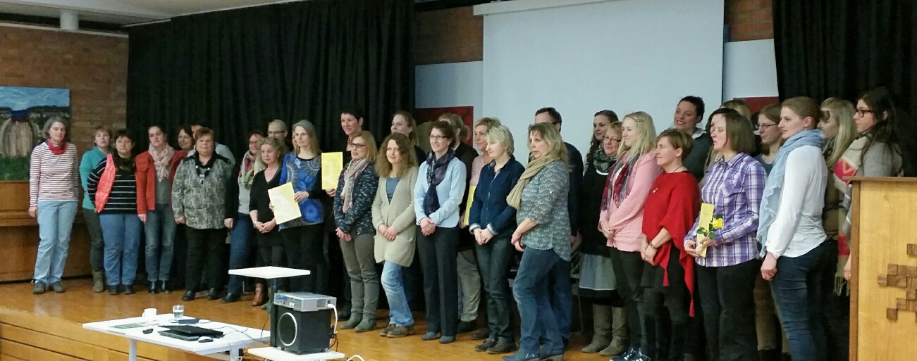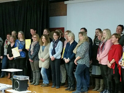 Zum Foto: Großes Engagement für Qualität in Kindertagesstätten: Beschäftigte der Kindertagesstätten Schwarmstedt, Buchholz und Essel bei der Zertifikatsübergabe.
