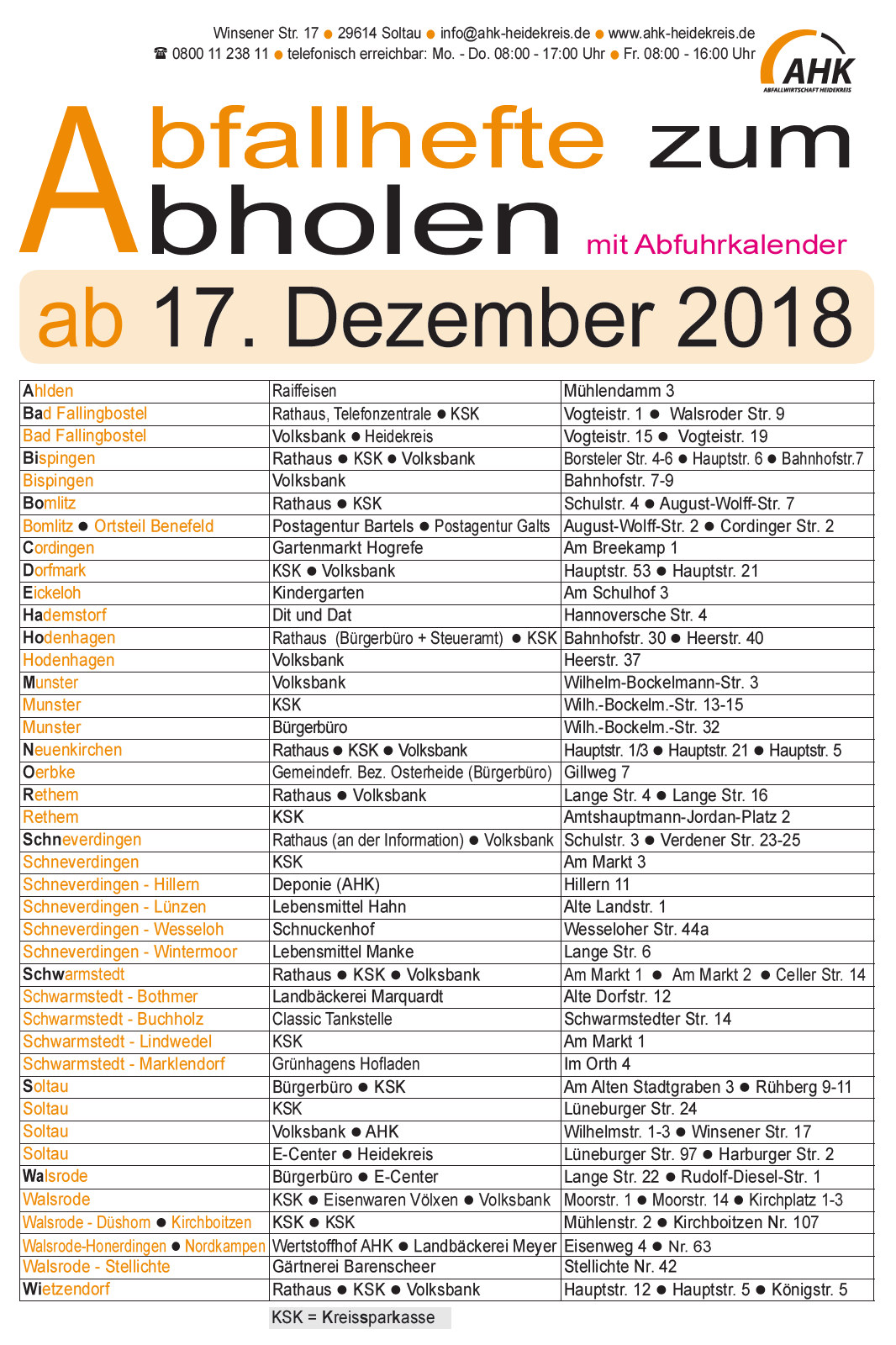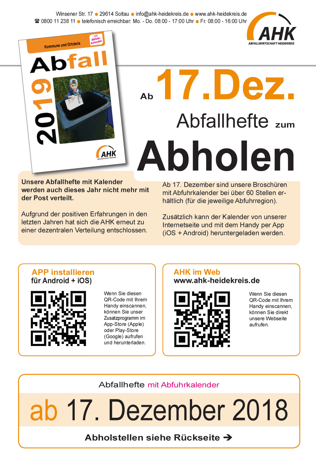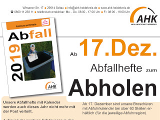AHK - Unsere Abfallhefte mit Kalender werden auch dieses Jahr nicht mehr mit der Post verteilt.