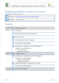 Einladung Projektwerkstatt Mittwoch, 23. Februar 18:00 bis 21:00 Uhr über Zoom