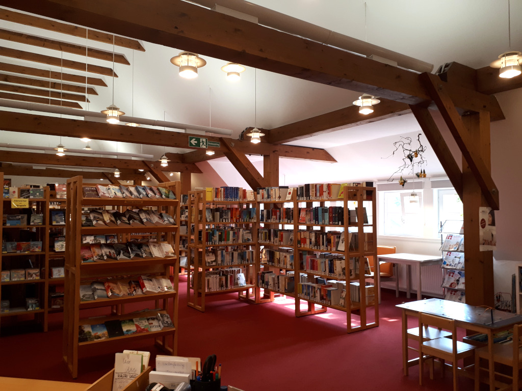 Das Bücherangebot der Bücherei umfasst alle Bereiche von Bilderbüchern für die Kleinsten über lustige oder spannende Unterhaltung für Kinder, Jugendliche und Erwachsene, bis hin zu interessanter Sachliteratur. Durch regelmäßige Neuanschaffungen angesagter Bücher bietet die Bücherei einen aktuellen und modernen Buchbestand an.
