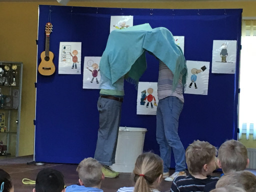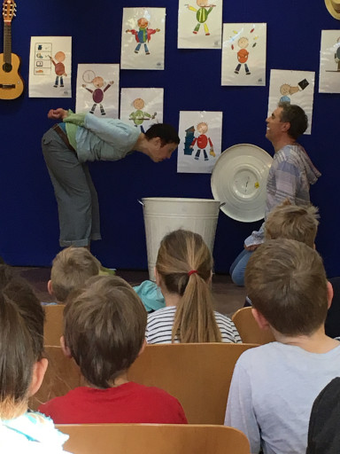 Alles, was uns ein „Nein- Gefühl“  gibt, alles was uns schlechte Gefühle macht, entsorgten die Darsteller in die Nein-Tonne! Zusammen mit den Kindern wurde überlegt was sie loswerden wollen. Zähneputzen? Fernsehzeit? Manche Regeln machen Sinn und gehören deshalb nicht in die Nein-Tonne. Aber wenn jemand mich überreden will eine Mutprobe zu begehen, wenn ich ein schlechtes Geheimnis habe, das mir Bauchweh macht, wenn jemand mich anfassen will und mir das kein gutes Gefühl gibt, dann rede ich darüber und sage laut NEIN.
