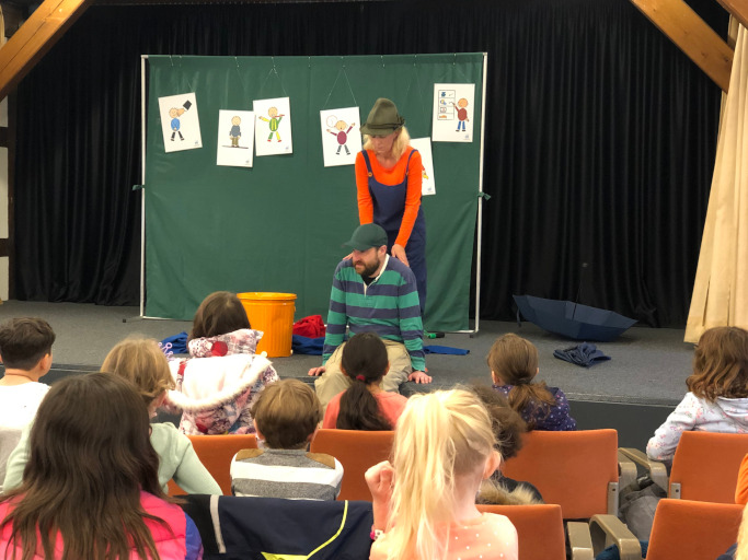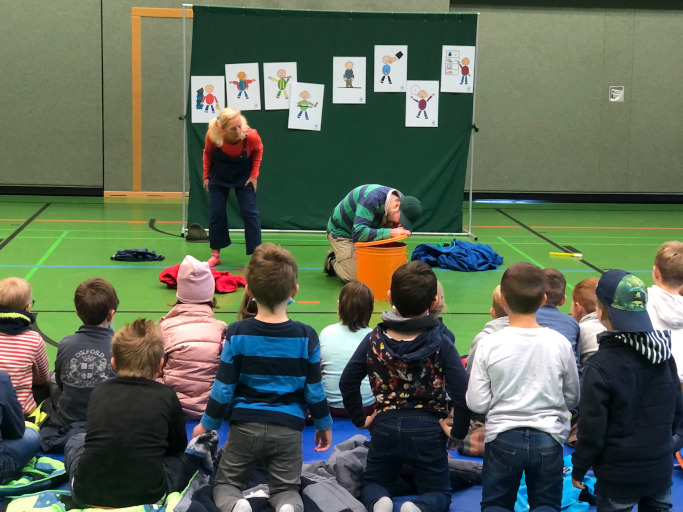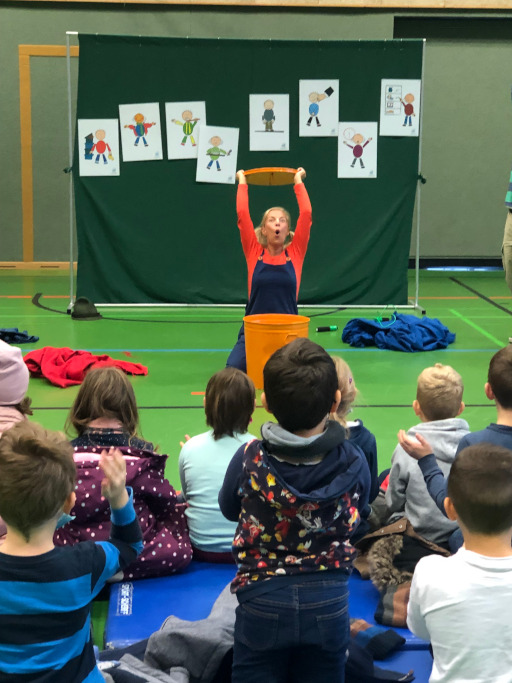 Als Silke und Thomas die Bühne betraten, wurde es still bei den Kindern. Alle waren gespannt, was „Die große Nein‐Tonne“ wohl ist und warum es sie gibt. „Will ich das? Oder nicht? Was sagt mein Bauch?” Alles, was uns ein „Nein‐ Gefühl“ gibt, alles was uns schlechte Gefühle macht, entsorgten die Darsteller in die Nein‐Tonne! Zusammen mit den Kindern wurde überlegt, was sie loswerden wollen. Zähneputzen? Fernsehzeit? Manche Regeln machen Sinn und gehören deshalb nicht in die Nein‐Tonne. Aber wenn jemand mich überreden will eine Mutprobe zu begehen, wenn ich ein schlechtes Geheimnis habe, das mir Bauchweh macht, wenn jemand mich anfassen will und mir das kein gutes Gefühl gibt, dann rede ich darüber und sage laut NEIN. Manchmal gibt es Sachen, die machen ein Nein‐Gefühl im Bauch. Es ist uns wichtig, dass die Kinder in der Samtgemeinde Schwarmstedt lernen, ihre Empfindungen wahrzunehmen, zu verstehen und zu verteidigen. Sie sollen wissen: Auch Erwachsenen gegenüber haben sie das Recht, sich aufzulehnen, wenn ihre Grenzen nicht respektiert werden.