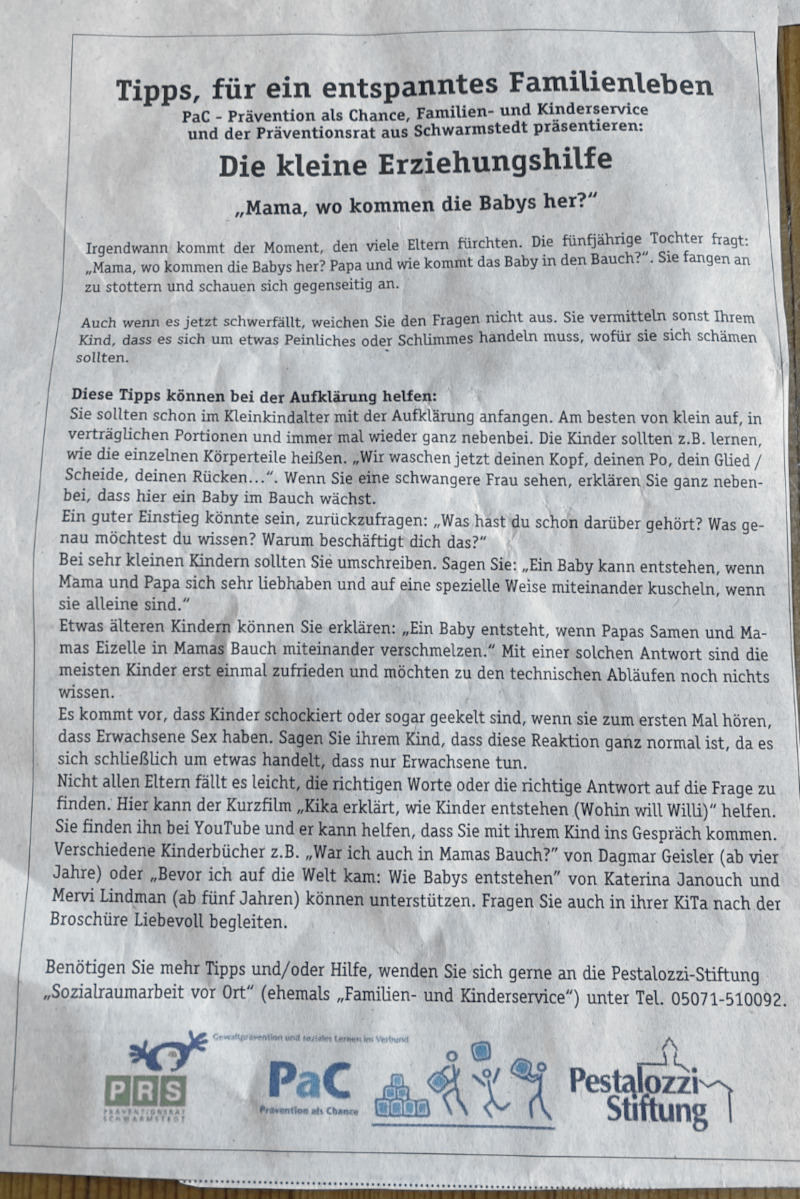 PaC - Prävention als Chance, Familien- und Kinderservice und der Präventionsrat aus Schwarmstedt präsentieren: Die kleine Erziehungshilfe. Artikel aus der Schwarmstedter Rundschau