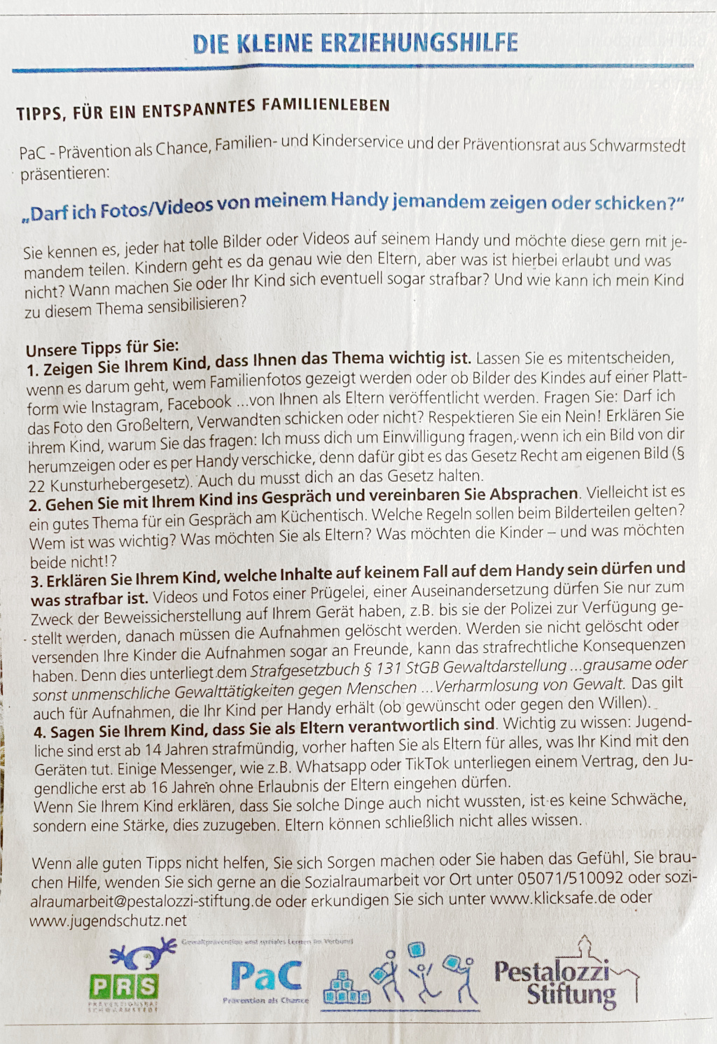 PaC - Prävention als Chance, Familien- und Kinderservice und der Präventionsrat aus Schwarmstedt präsentieren: Die kleine Erziehungshilfe. Artikel aus der Schwarmstedter Rundschau